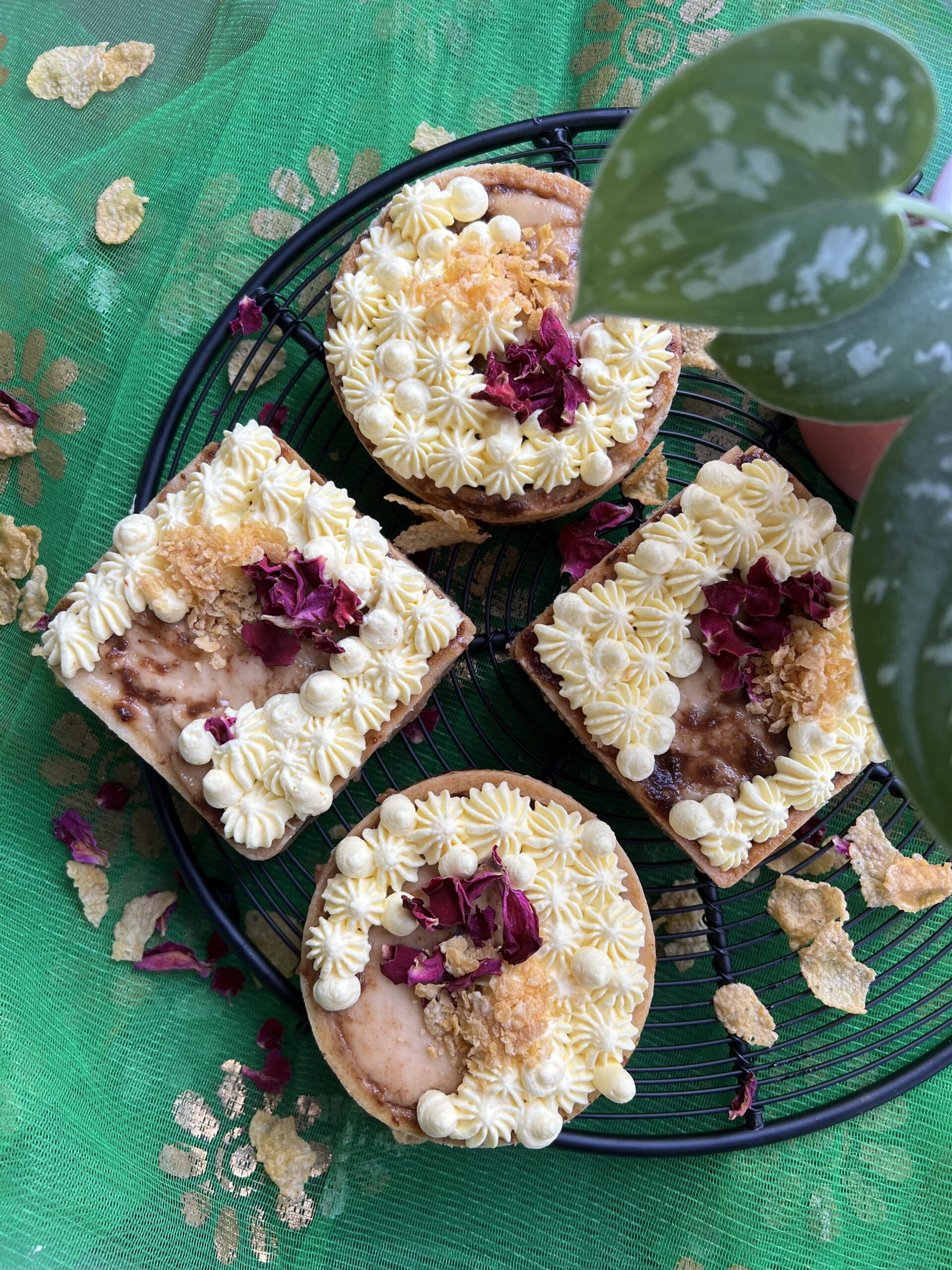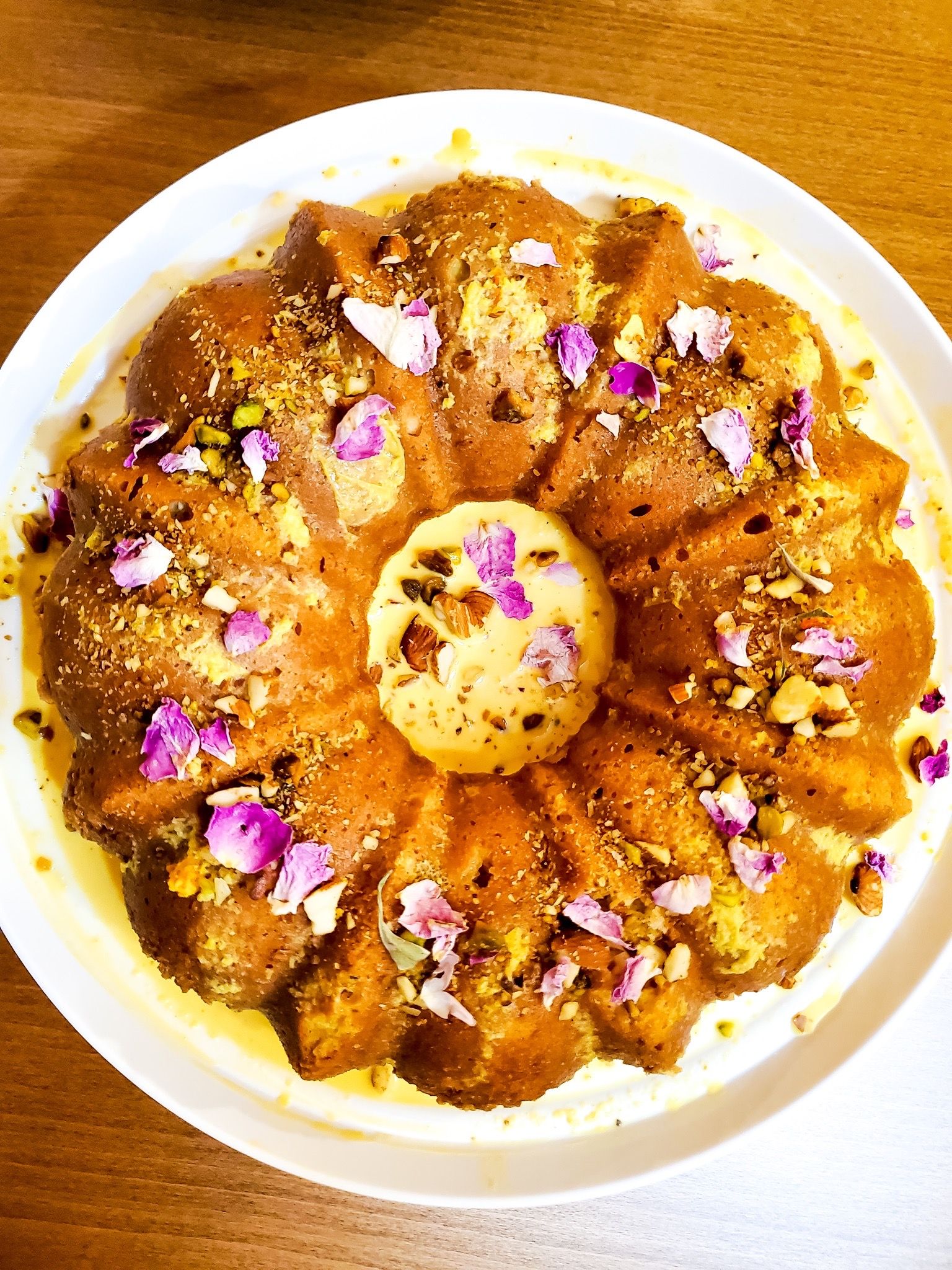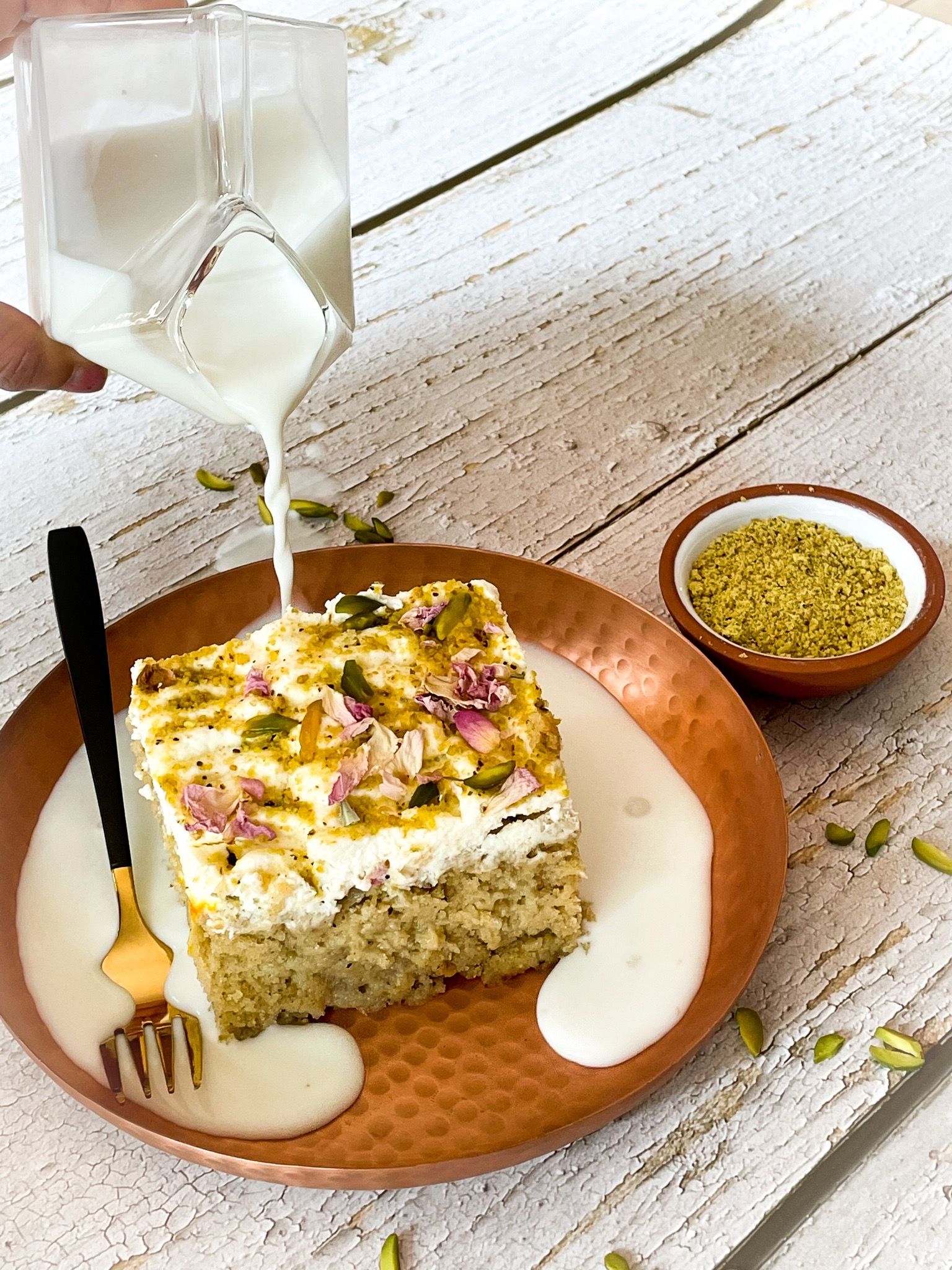 Rich and decadent ube cake soaked in luxurious tri-milk ube mixture. Topped with silky and light ube whipped cream.